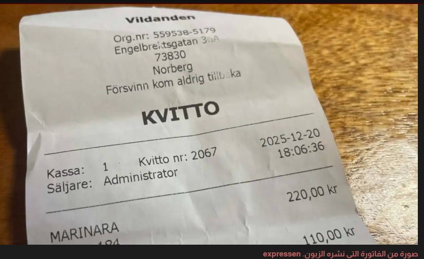 بعد تناولها وجبة في أحد مطاعم السويد، فوجئت شابة عند استلام إيصال الدفع بظهور عبارة صادمة وغير مألوفة، لم تكن جزءًا من تفاصيل الطلب أو المبلغ، بل رسالة أثارت دهشتها ودفعتها للتساؤل: كيف ولماذا ظهرت هذه الكلمات على الفاتورة؟